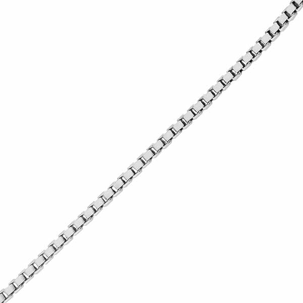 Hopeinen venetsiaketju. Venetsiamallinen kaulaketju on klassinen ja tyylikäs valinta monenlaisen riipushelan ketjuksi. Ajattoman muotoilun sekä kestävyytensä vuoksi venetsiaketju on yksi suosituimmista ketjutyypeistä. Venetsiaketju koostuu useista neliönmuotoisista lenkeistä, jotka kiinnitetään toisiinsa niin, että lopputuloksena on kaunis tasainen ketju. Venetsiaketju heijastaa kauniisti valoa. Tämän kaulaketjun paksuus on 0,9 mm ja pituuden voit valita useista eri vaihtoehdoista. Ketju on pintakäsitelty rodiumilla, joka estää ketjun tummumista.