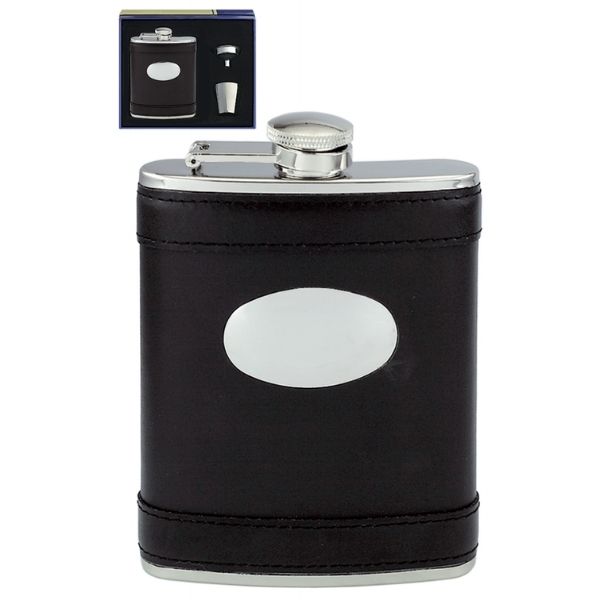 Teräksinen taskumatti, jonka tilavuus on 20 cl, taskumatissa on tekonahkapäällinen ja metallinen kaiverruslaatta, johon voi kaivertaa haluamasi tekstin. Taskumatti toimitetaan lahjapakkauksessa.