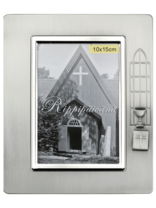 Rippiaiheinen valokuvakehys. Erinomainen rippilahja, kehykseen saa ihanan valokuvamuiston rippipäivästä. Kehystä koristavat ehtoollismalja sekä raamattu. Valokuvakoko 10 x 15 cm.