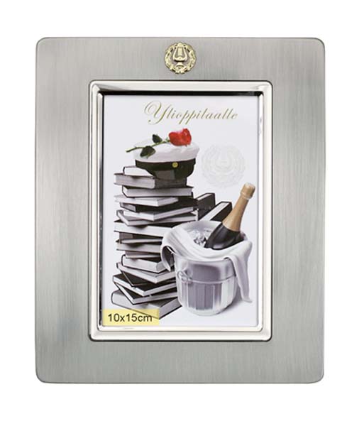 Valokuvakehys lahjaksi ylioppilaalle. Kehykseen mahtuu 10 x 15 cm kokoinen valokuva ja itse kehyksen mitat on 14 x 19 cm. Kehyksessä on koristeena kullanvärinen ylioppilaslyyra. Kehykseen on mahdollista kaivertaa esimerkiksi ylioppilaan nimi! Kaiverrettu tuote on merkityksellinen lahja!