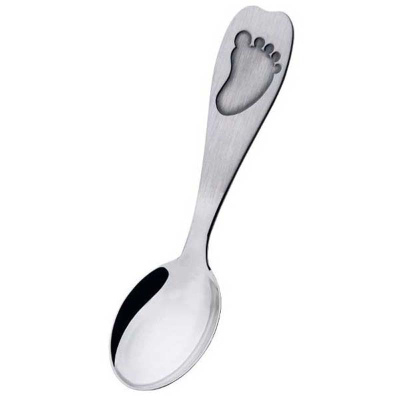 Saurum sympaattinen ensiaskel hopealusikka! Kummilusikka jalanjälkikuviolla symboloi edessä olevaa elämänmittaista matkaa.