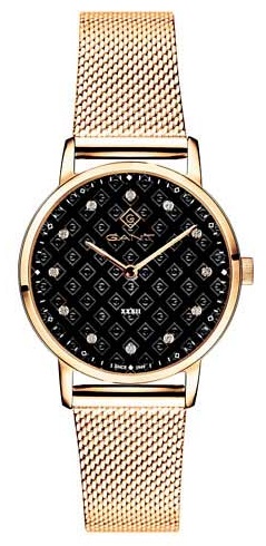 Tässä näyttävässä Gantin kellossa on ruostumattomasta teräksestä valmistettu runko ja ranneke. Kellotaulu on 32 millimetriä leveä ja kellotaulun sävy on tyylikkään musta, jossa on hienoja yksityiskohtia. Kellon indeksit ovat swarovskin kristalleja. Kello on roiskevesitiivis eli sen vedenkesto on 5 bar. Rannekello saa virtansa paristolla toimivasta kvartsikoneistosta.