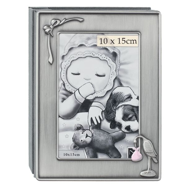 Kaunis valokuvakehysi, jossa on koristeena haikara, joka kantaa vaaleanpunaista myttyä. Kehykseen pystyy kaivertamaan esimerkiksi lapsen nimen ja syntymäpäivän. Kaiverrettu kehys on...