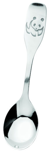 Kummilusikassa on WWF pandan kuva, takapuolelle voi kaivertaa syntymätiedot. Kummilusikka on ihana lahja kummilta ristiäisissä.