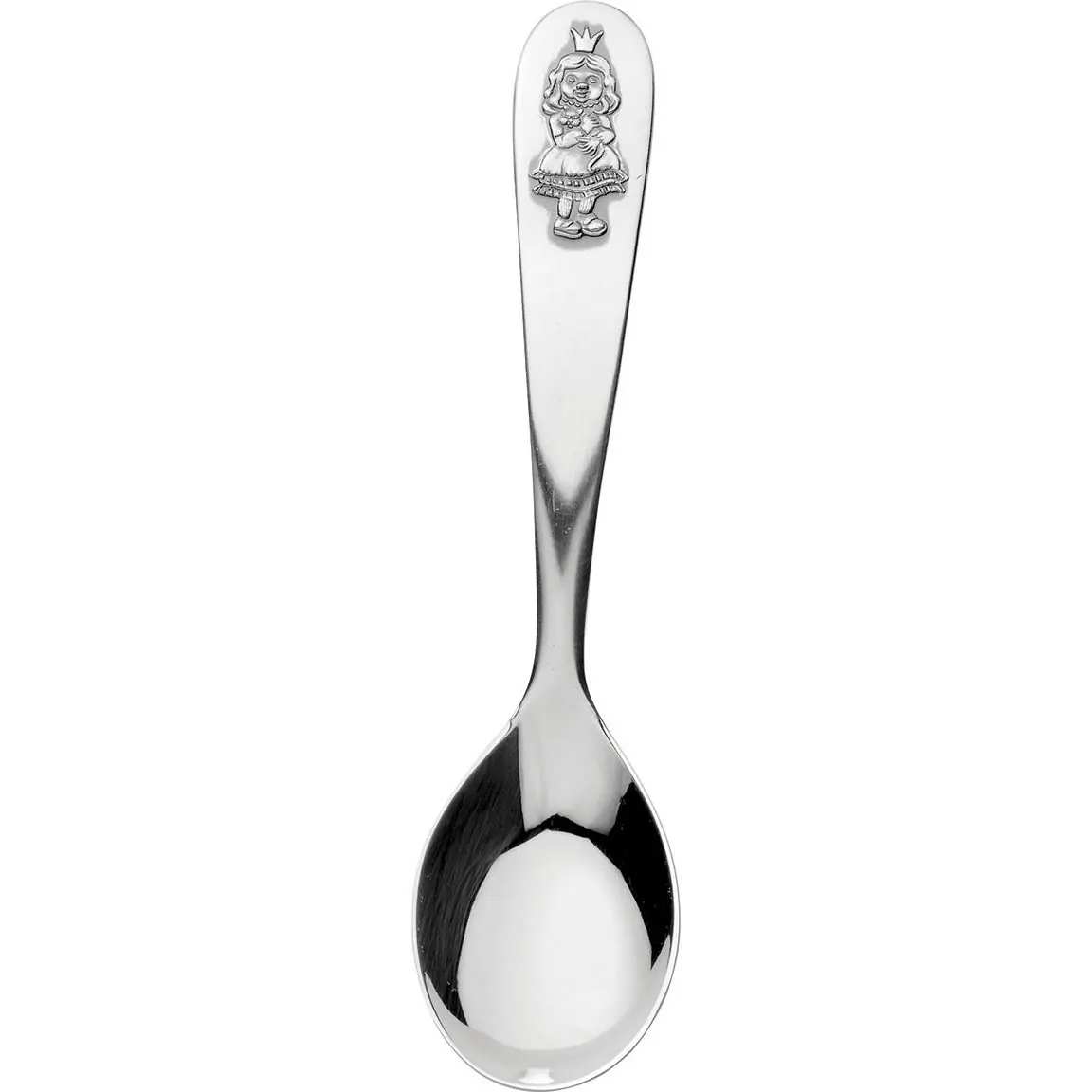 Kummilusikka on pienelle prinsessalle aivan ihastuttava lahja. Takapuolelle voidaan kaivertaa pienokaisen syntymätiedot.