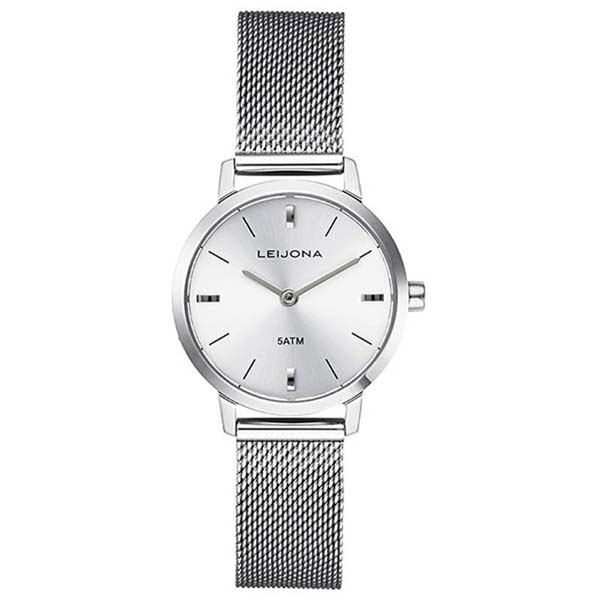 Naisten Leijona meshrannekkeella, jossa on 26 mm hopea kellotaulu. Kello on vesitiivis 50 metriin saakka sekä Leijona kelloille myönnetään kahden vuoden takuu!