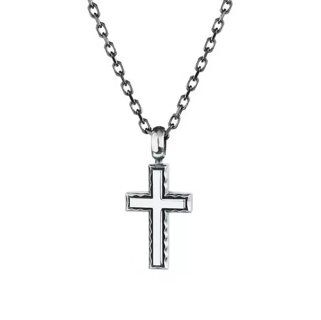 Klassinen hopearisti aaltomaisilla reunoilla ja patinoinnilla. Ristin korkeus on 27 mm ja leveys 13 mm. Materiaali on 925 hopea ja ketjun pituuden saa säädettyä välillä 45-50 cm vaikkapa omaan asuun sopivaksi. Erinomainen valinta rippiristiksi tai sitten vain luottokoruksi arkeen!
