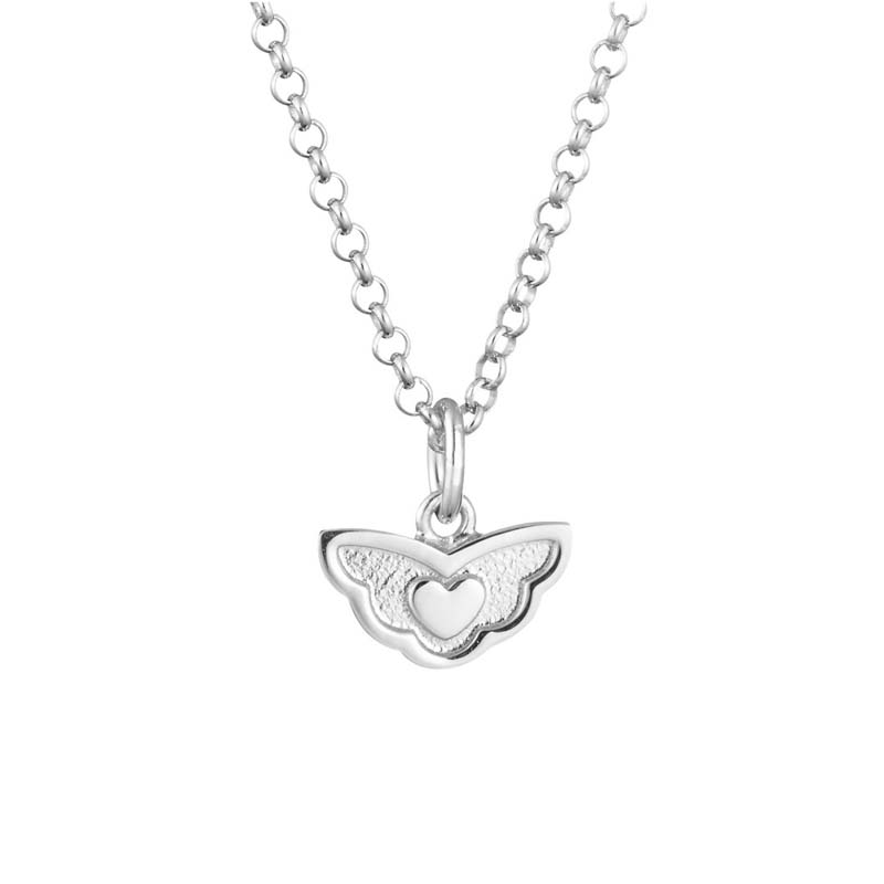 Sievä ja siro hopeariipus, joka sopii erinomaisesti ensilahjaksi pienelle. Hento-riipuksessa on hopeiset siivet, ja niiden keskellä on sydän. Ihanan symbolinen lahja kastelahjaksi!