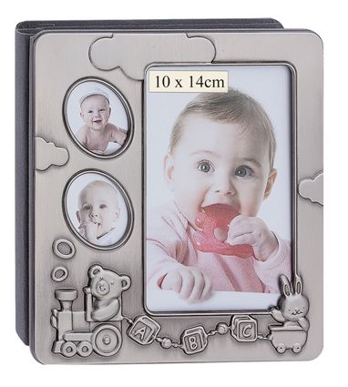 Ihana valokuva-albumi, jonka kannessa komeilee nalle ja juna. Valokuva-albumi, jossa on 40 kaksipuolista sivua. Ihana kastelahja sekä tytölle että pojalle.