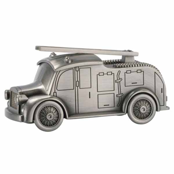 Nordahl Andersenin säästöpankki paloauto. Tämä lasten paloauto-säästölipas tekee säästämisestä hauskaa ja on myös komea koriste-esine! Tyylikkään tinatun säästöpankin korkeus on 6 cm ja pituus 14 cm. Voit halutessasi valita tähän säästölippaaseen kaiverruksen. Säästölippaamme sopivat erinomaisesti esimerkiksi kastelahjoiksi.