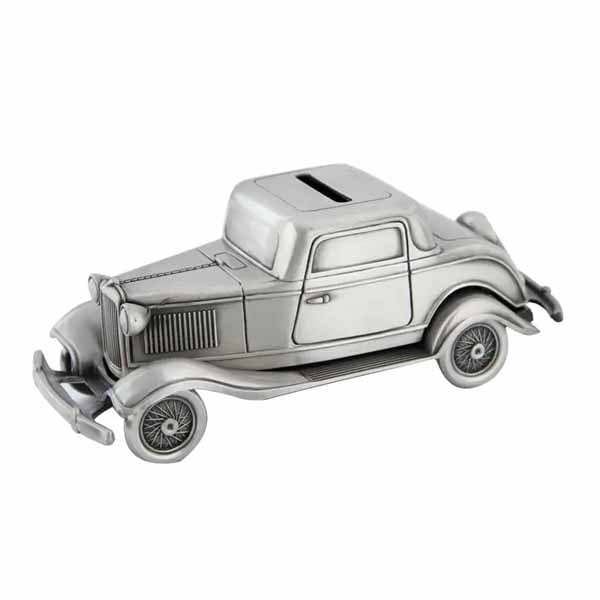 Hauska säästölipas, tyylikäs vanhanajan auto. Tämä autojen ystäville sopiva lasten säästölipas tekee säästämisestä hauskaa! Metallisen säästöpankin korkeus on 6 ja pituus 15,5 cm.