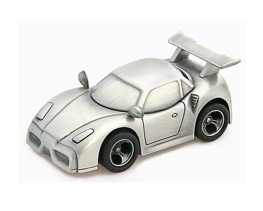 Ralliauton muotoinen säästöpankki. Tämä säästölipas ilahduttaa kilpa-autojen ystävää ja tekee säästämisestä hauskaa lapselle! Säästöpankin korkeus on 4,5 cm ja pituus 12 cm.