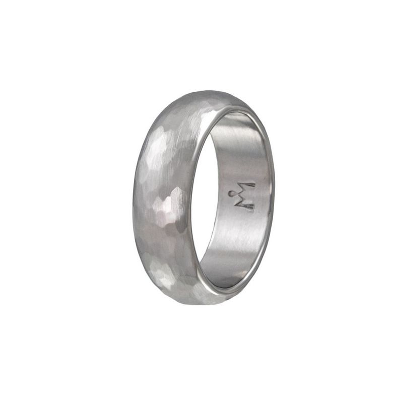 Ilkka Marttiini puolipyöreä terässormus on ajaton valinta. Tyylikkään ja hieman massiivisemman sormuksen pinta on sepän takoma, jolloin jokainen sormus on uniikki tuote. Sormuksen rungon leveys on 7 mm ja sen profiili pehmeä puolipyöreä. Sormus on valmistettu teräksestä, jolloin se kestää niin aikaa kuin elämänkin kolhuja. Ilkka Marttiini terässormus on erinomainen lahjaidea henkilölle, joka arvostaa kestävyyttä sekä ajatonta muotoilua. Sormusten suunnittelu sekä valmistus on Suomessa ja jokainen Ilkka Marttiini sormus on käsin leimattu sepän toimesta. Sormuksen rungon leveyden vuoksi on suositeltavaa varmistaa oikea koko. Usein on suositeltavaa valita normaalia sormuskokoaan puoli numeroa suurempi koko, jotta voidaan taata sopiva istuvuus.