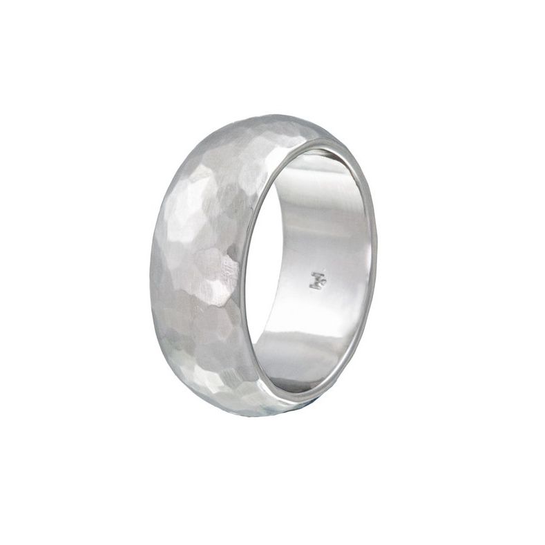 Ilkka Marttiini puolipyöreä terässormus on ajaton valinta. Tyylikkään ja hieman massiivisemman sormuksen pinta on sepän takoma, jolloin jokainen sormus on uniikki tuote. Sormuksen rungon leveys on 8 mm ja sen profiili pehmeä puolipyöreä. Sormus on valmistettu teräksestä, jolloin se kestää niin aikaa kuin elämänkin kolhuja. Ilkka Marttiini terässormus on erinomainen lahjaidea henkilölle, joka arvostaa kestävyyttä sekä ajatonta muotoilua. Sormusten suunnittelu sekä valmistus on Suomessa ja jokainen Ilkka Marttiini sormus on käsin leimattu sepän toimesta. Sormuksen rungon leveyden vuoksi on suositeltavaa varmistaa oikea koko. Usein on suositeltavaa valita normaalia sormuskokoaan puoli numeroa suurempi koko, jotta voidaan taata sopiva istuvuus.