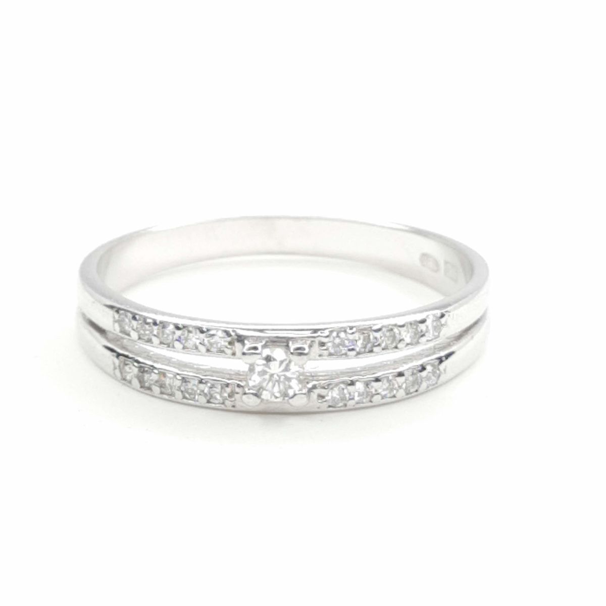 C.Granit V9044-05 on tuplarunkoinen valkokultainen rivitimanttisormus