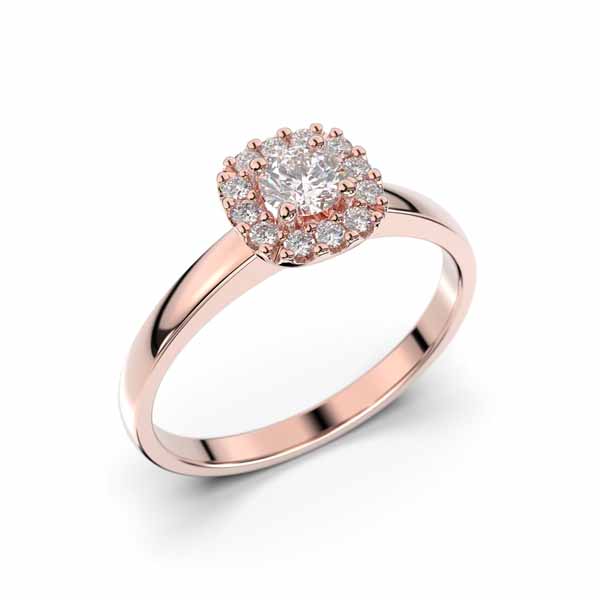 Tyylikäs ja näyttävä Festiven punakultainen Janette halosormus laboratoriotimanteilla. Janette on tyylikäs halosormus, jonka keskipisteenä säihkyy upea 0,18 ct briljanttihiottu laboratoriotimantti. Keskikiveä ympäröi 12 pienempää, mutta kauniisti säkenöivää, laboratoriotimanttia. Sormus on valmistettu lämminsävyisestä punakullasta, kullan pitoisuuden voit valita kahdesta eri vaihtoehdosta; 14k tai 18k. Sormuksen siron ja suoran flakkaprofiilisen rungon leveys on 1,9 mm. Janette laboratoriotimanttisormus sopii käytettäväksi yksinään sekä yhdistettynä toisen sormuksen rinnalle, erityisen hyvin halosormuksen rinnalle istuu rivitimanttisormus. Sormus on saatavilla myös kelta- ja valkokultaisena sekä luonnontimanteilla.