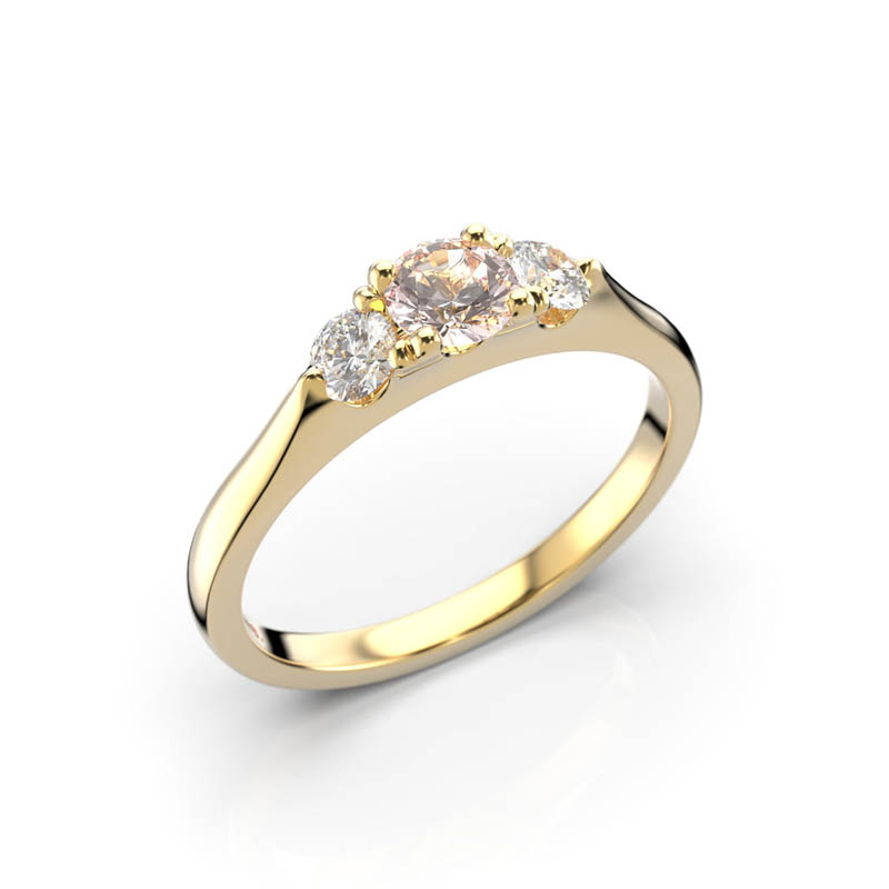 Tyylikäs Megan sormus kolmella kivellä, jonka pääosassa loistelee vaaleanpunainen morganiitti. Sormus on valmistettu laadukkaasta keltakullasta, kullan pitoisuuden voit valita kolmesta eri vaihtoehdosta; 9K, 14K tai 18K. Sormus on saatavilla myös puna- ja valkokultaisena.