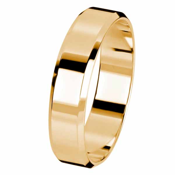 Keltakultainen Kohinoor kihlasormus tyylikkäillä viisteillä. Kultasormuksen rungon profiili on flakka ja sen rungon leveys on 5 mm. Tämä kihlasormus on valmistettu laadukkaasta 14 karaatin keltakullasta.