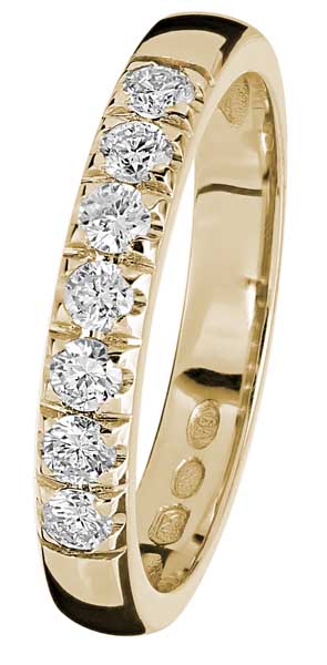 Kohinoor Selene timanttisormukset vain Kulta-Ajasta! Tämä klassinen ja näyttävä Selene rivisormus on valmistettu 14 karaatin keltakullasta. Sormuksen puolipyöreään 3,0 mm leveään runkoon on istutettu yhteensä seitsemän säihkyvää timanttia. Yhden timantin paino on 0,05 ct, joten yhteensä sormuksessa on timantteja 0,35 ct verran. Tämä malli on saatavilla myös valko- ja punakultaisena. Tutustu myös muihin Selene malliston sormuksiin!