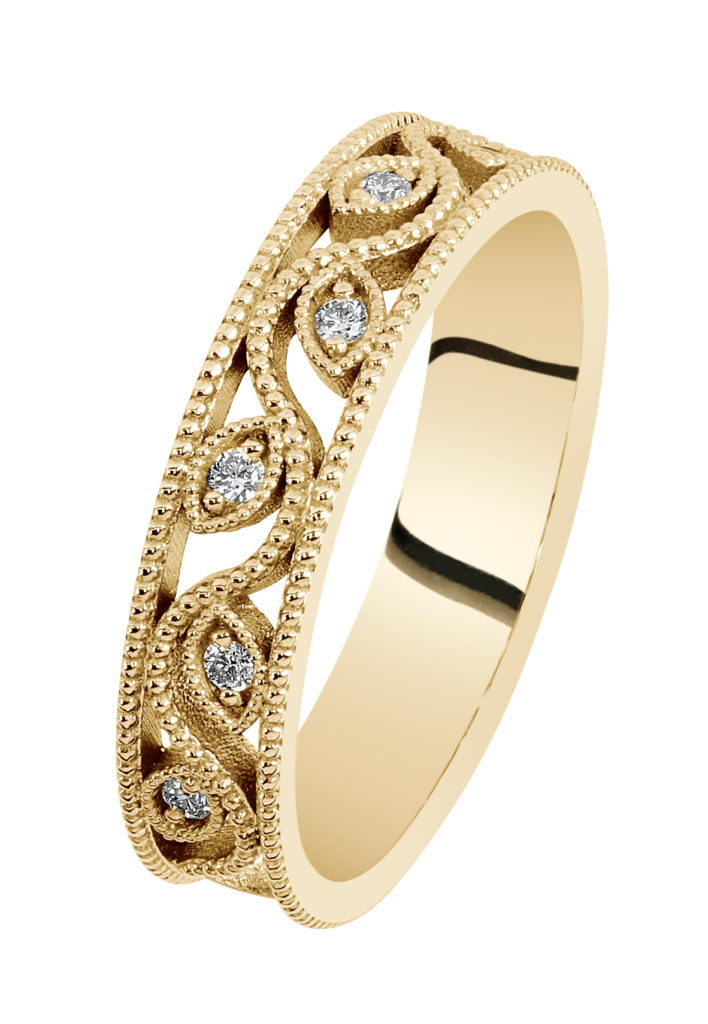 Kotimainen Kohinoor Swan timanttisormus. Keltakultainen Swan-sormus muodostuu kauniista lehti- ja krysanttikuviosta. Tässä herkässä köynnösmäisessä sormuksessa on istutetttuna 6 kappaletta 0,01 ct timanttia, joiden yhteispaino on 0,06 ct. Sormuksen reunat ovat suorat ja keskellä kulkee aaltoileva timanttiköynnös. Sormuksen runko on valmistettu 14 karaatin keltakullasta. Sormukseen on helppo yhdistää kihla- tai rivisormus. Swan sormus on myös saatavilla valko- ja punakultaisena.