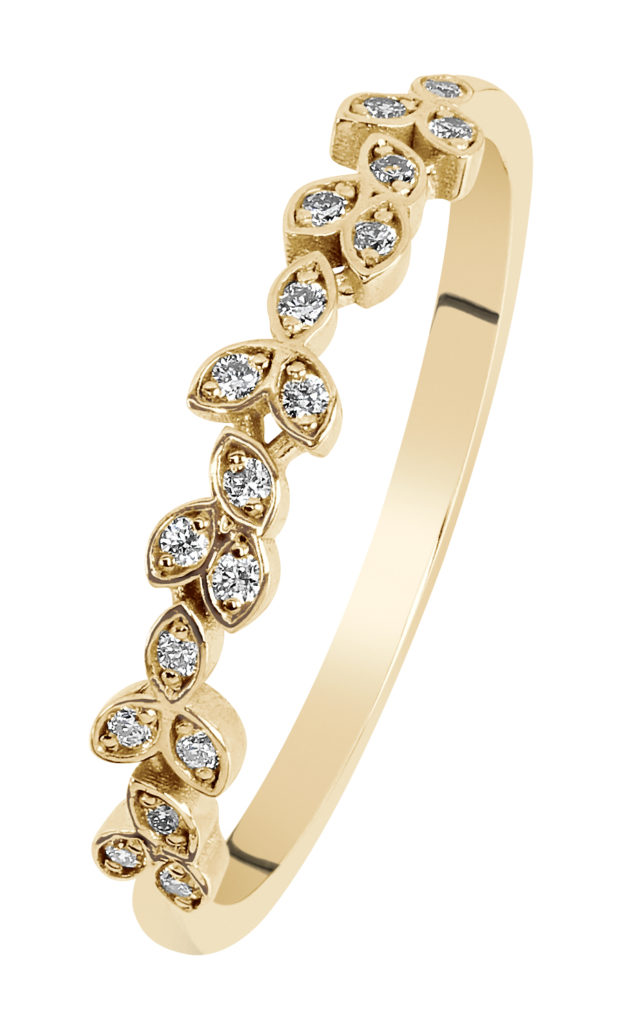 Kotimainen Kohinoor Swan timanttisormus. Keltakultainen siro Swan-sormus muodostuu kauniista lehtikuviosta. Tässä herkässä köynnösmäisessä sormuksessa on istutetttuna 18 kappaletta 0,005 ct timanttia, joiden yhteispaino on 0,09 ct. Sormuksen runko on valmistettu 14 karaatin keltakullasta. Sormukseen on helppo yhdistää kihla- tai rivisormus. Swan sormus on myös saatavilla valkokultaisena.
