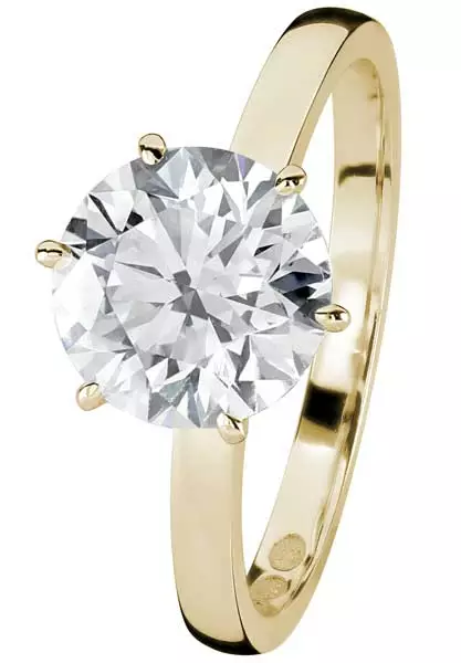 Kohinoorin Theia-solitairesormus kahden karaatin laboratoriotimantilla ja sileällä rungolla. 2,00 ct painoinen laboratoriotimantti on laadultaan G-Vs. Sormuksen runko on valmistettu 14 karaatin keltakullasta.