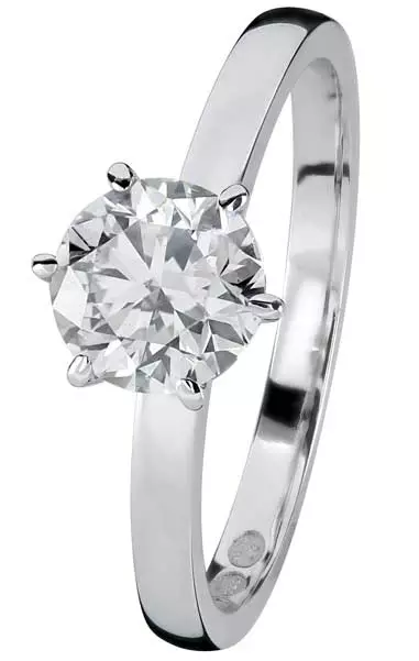Kohinoorin Theia-solitairesormus yhden karaatin laboratoriotimantilla ja sileällä rungolla. 1,00 ct painoinen laboratoriotimantti on laadultaan G-Vs. Sormuksen runko on valmistettu 14 karaatin valkokullasta.