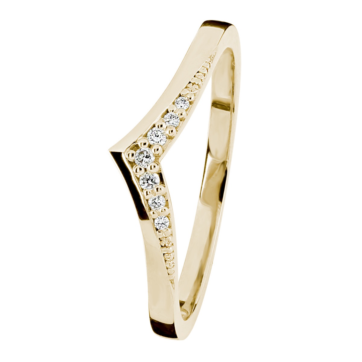 Keltakultainen naisten Kohinoor syleilijä-timanttisormus. Tämä timanttisormus sopii erinomaisesti yksikivisen solitaire-timanttisormuksen tai halo-sormuksen vierelle sen kauniilla kaarevalla muodollaan. Sormus on valmistettu 14 karaatin keltakullasta. Timanttisormuksessa säihkyvät 7 kappaletta timantteja, joiden yhteispaino on 0,05 ct. Tähän sormukseen on valittavissa kaiverruspalvelu!