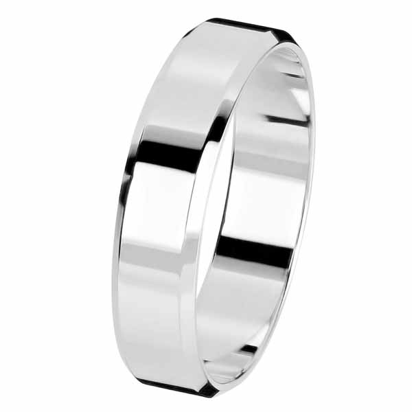 Valkokultainen Kohinoor kihlasormus tyylikkäillä viisteillä. Kultasormuksen rungon profiili on flakka ja sen rungon leveys on 5 mm. Tämä kihlasormus on valmistettu laadukkaasta 14 karaatin valkokullasta.