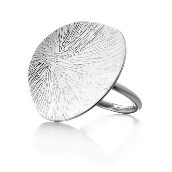 Kotimaisen Lumoava Lily sarjan hopeinen sormus on upean näyttävä valinta! Sormuksen tyylitelty pintastruktuuri tuo tyyliisi modernia ilmettä ja sädehtivää luksusta. Sormuksen koko on valittavissa väliltä 15,5 mm - 21,0 mm. Kookkaan koruosan koko on 33 x 30 mm. Sormuksen materiaali on laadukas 925 Sterling-hopea.