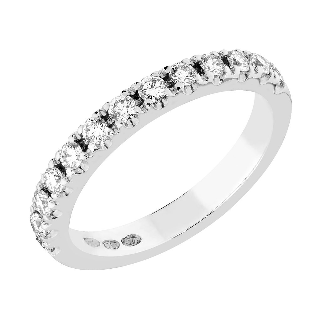 18 karaatin valkokullasta valmistettu rivitimanttisormus. Sormuksen rungon leveys on noin 2,8 mm. Sormukseen on istutettu 11-15 kappaletta säihkyvää timanttia, jotka ovat yhteispainoltaan 0,22-0,60 ct. T-12w rivisormus on yhteensopiva esimerkiksi Kuunsäde- ja Aamukaste-malliston solitaire-timanttisormuksien vierelle.