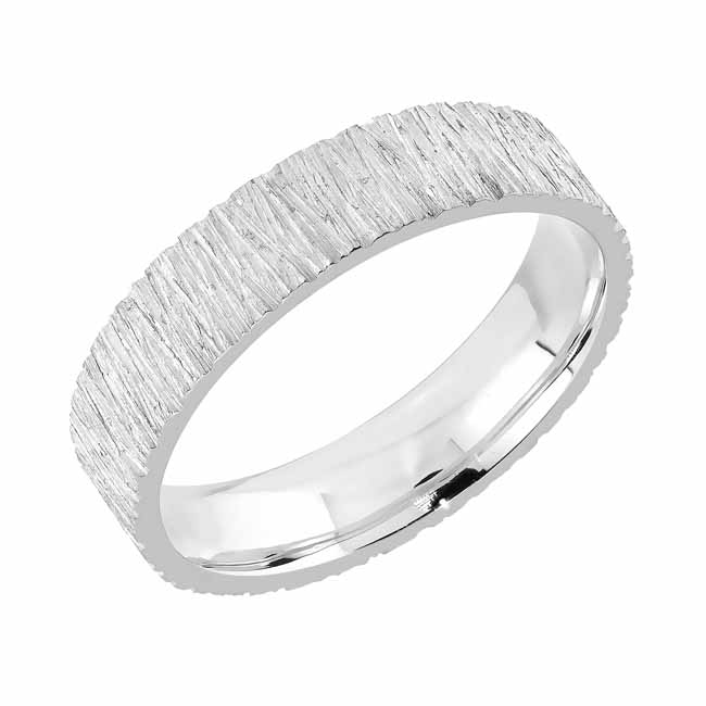 Sormuksen pinta tehdään käsityönä, joten kahta samanlaista sormusta ei tule vastaan. 14 karaatin valkokullasta valmistettu runko ja sormuksen rungon leveys on noin 4 mm ja rungon profiili on flakka, jonka sisäpinta on pyöristetty. Huom, kuvassa oleva sormus 5mm!