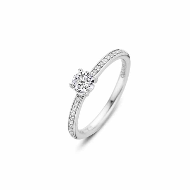Naisten hopeasormus kirkkailla zirkonia-korukivillä. Tämä Ti Senton hopeinen sormus ihastuttaa sen runkoa koristavilla kirkkailla koristekivillä. Rungon leveys on 2 mm ja sen keskellä säihkyy yksi isompi zirkonia. Materiaali on laadukas 925 sterling-hopea. Sormuksen koko on valittavissa vaihtoehdoista 16,6 mm, 17,2 mm tai 17,8 mm (tuotteen kokovaihtoehdoissa pyöristetyt luvut).