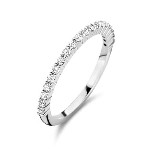 Naisten hopeasormus kirkkailla zirkonia-korukivillä. Tämä Ti Senton hopeinen sormus ihastuttaa säkenöivällä zirkonia-rivistöllään. Siron hopeasormuksen rungon leveys on 1,5 mm. Materiaali on laadukas 925 sterling-hopea. Sormuksen koko on valittavissa.