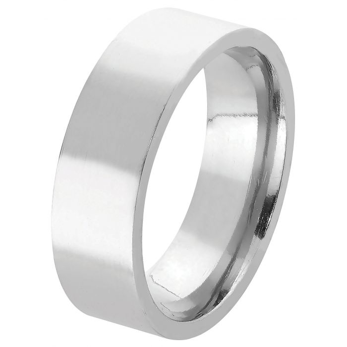 Titaaninen kihlasormus suorilla flakkamallisilla reunoilla. Rungon leveys on 6 mm. Titaani on antiallerginen, kevyt ja kestävä materiaali, joka sopii monelle.