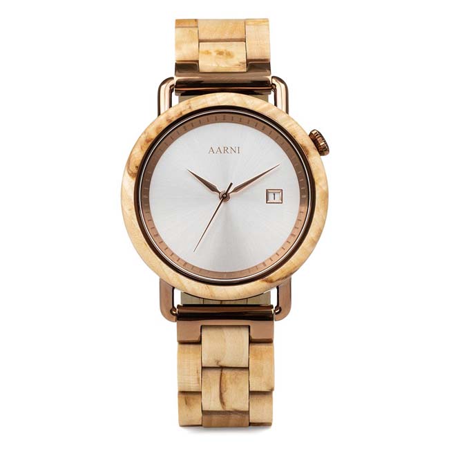 Aarni Wood on suomalainen yritys, joka valmistaa ainutlaatuisia puisia rannekelloja. Aarni-puukellojen valmistuksessa käytetään ensiluokkaisia materiaaleja, komponentteja ja valmistusmenetelmiä. Aarni-kellojen sydämenä sykkii laadukkaat sveitsiläiset ja japanilaiset koneistot. Aarni-puukellojen selkeän muotokielen avulla tuodaan esille luonnonmateriaalien luonnollinen kauneus. Aarni-rannekelloille on myönnetty arvostettu Design from Finland -merkki tunnustuksena suomalaisesta muotoilusta. Vastuu metsistä on Aarnille tärkeää - Aarni kelloissa käytetty ulkomainen puu on sertifioitua ja puun alkuperä on tiedossa. Puumateriaalien lisäksi Aarni käyttää osassa tuotteissaan laadukasta ja vastuullista kotimaista hirvennahkaa.