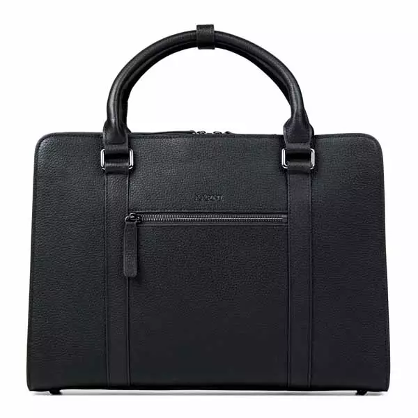 Aarni Venture musta tietokonelaukku pohjoismaisesta naudannahasta. Briefcase-mallisessa laukussa yhdistyvät käytännöllinen design ja tarkkaan harkitut yksityiskohdat. Pyöristetyt kantokahvat tuntuvat mukavalta kädessä ja irrotettavan olkahihnan avulla saat kannettua laukun myös helposti olalla. Sisältä löytyy oma tasku läppärille sekä pienemmät sivutaskut latureille tai muille pientarvikkeille. Laukun leveys on 38 cm, korkeus 28 cm ja syvyys 10 cm. Aarni tietokonelaukku toimitetaan kätevässä suojaavassa säilytyspussissa.
