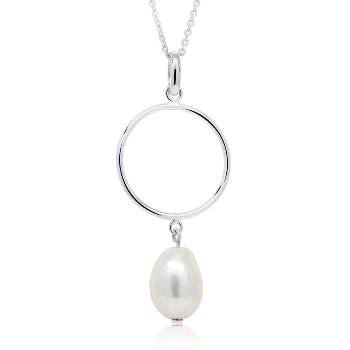 Tyylikäs hopeariipus, jossa pyöreästä hopeakehästä roikkuu valkoinen makeanveden helmi. Riipuksen koko on 17,5 x 34,5 mm (riipuslenkin kanssa korkeus 41 mm). Hopeaketjun pituus on kätevästi säädettävissä välillä 40-45 cm. Tämä kaulakoru on valmistettu laadukkaasta 925 hopeasta.