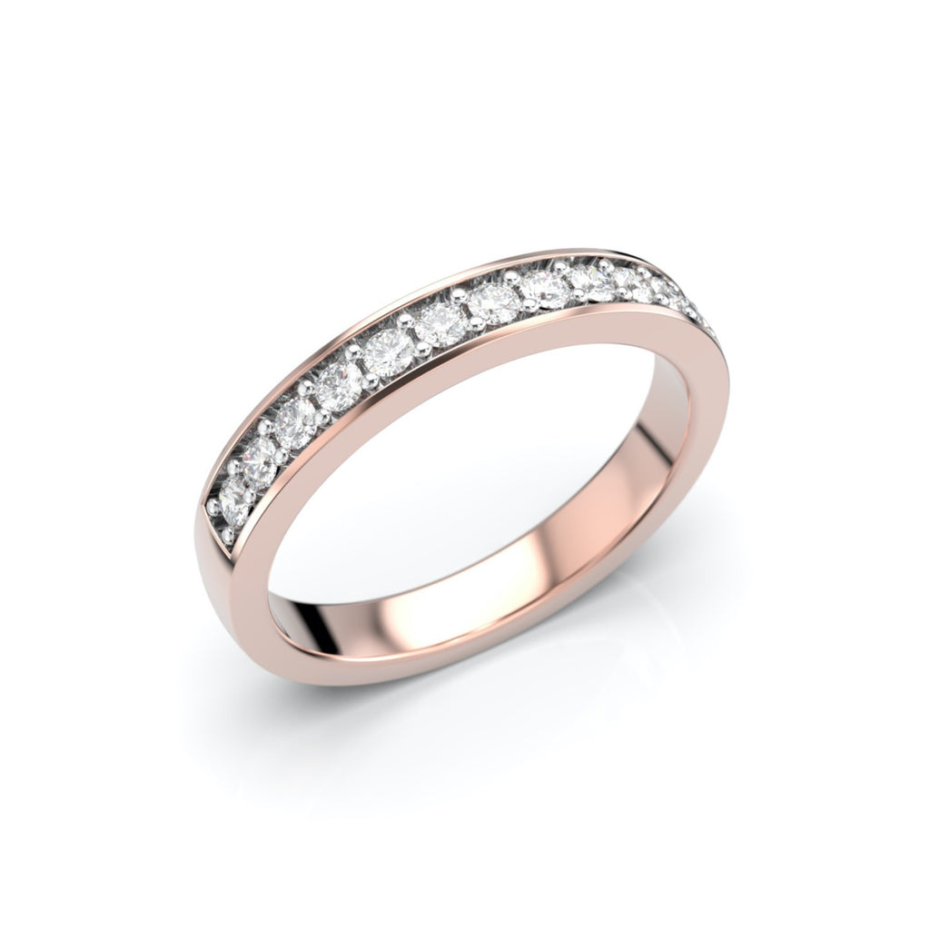 Festiven Ariel timanttisormus on klassisen kaunis rivisormus, joka sopii käytettäväksi yksinään sekä yhdistettynä toisen sormuksen rinnalle. Tämä Ariel timanttirivisormus on valmistettu ruusukullasta, kullan pitoisuuden voit valita kolmesta eri vaihtoehdosta 9k, 14k tai 18k. Festive Ariel sormuksessa on 3,0 mm leveä. Sormuksen runkoon on istutettu 12 kappaletta 0,02 ct briljanttihiontaisia säihkyviä timantteja. Ariel on kaunis ja hyvin perinteinen rivisormus. Ariel sormusta on saatavilla myös kelta- ja valkokultaisena.