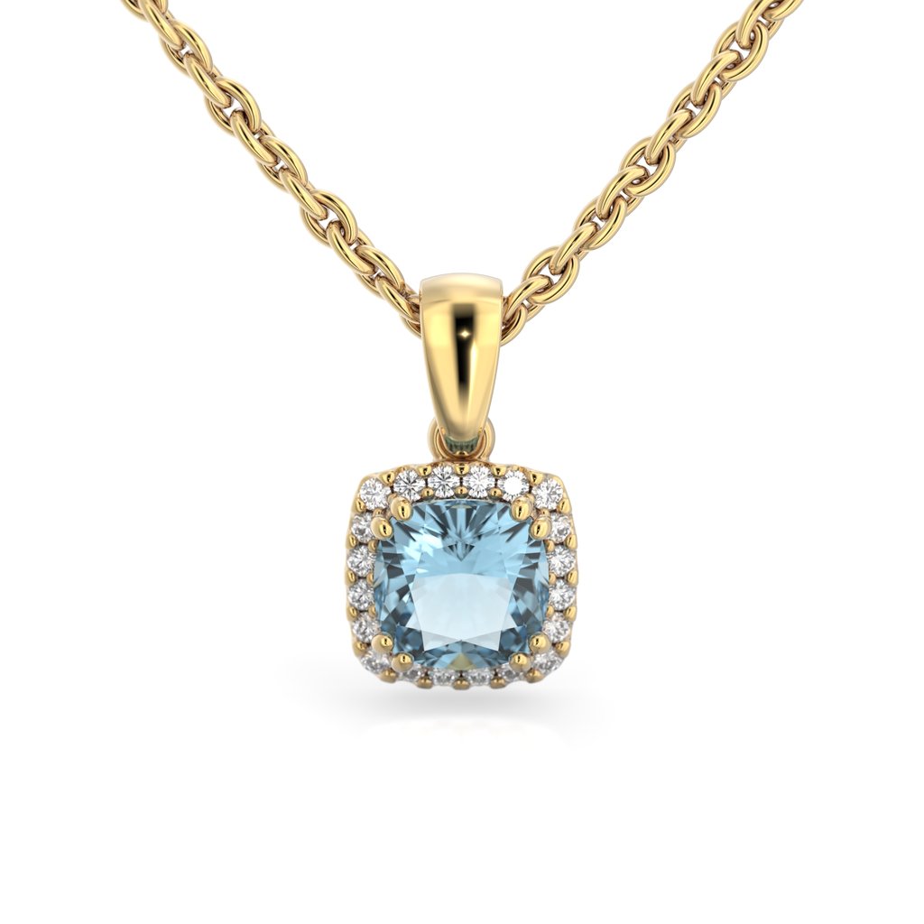 Festive Elsa timanttiriipus akvamariinilla 0,10 ct keltakulta 14K Festiven elegantti Elsa-timanttiakvamariiniriipus, jonka keskipisteenä on vaaleansininen upea cushion-hiottu akvamariini. Riipuksen... Lue lisää
