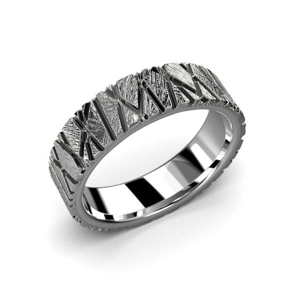 Festive Rautapuu miesten kihlasormus. Festive Rautapuu-sormus on vahva ja jykevä, niin kuin rakkaus. Sormuksessa on kaunis, rosoinen pinta. Sormus on suunniteltu sulhasen ja morsiamen sormukseksi. Sormuksen runko on leveydeltään 5,5 mm ja se on profiililtaan flakka, eli suorareunainen. Rautapuu sormuksen valkokullan pitoisuus on valittavissa 9, 14 ja 18 karaatin väliltä. Valkokultaisessa sormuksessa on lisäksi musta rodinointi, mikä saa aikaan tyylikkään tumman sävyn.