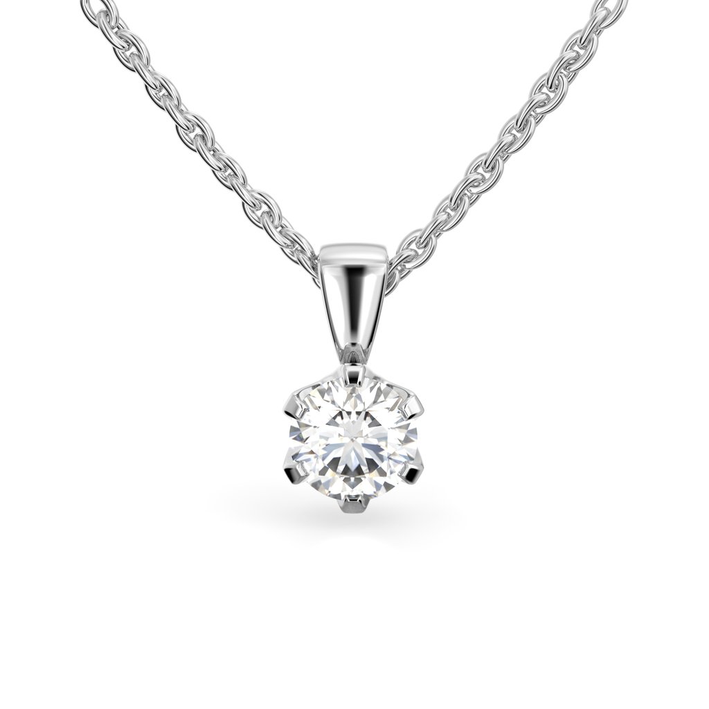 Ajaton ja tyylikäs Festive Classic timanttiriipus, jonka keskipisteessä säihkyvä briljanttihiottu timantti on istutettu klassisen kauniiseen kruunuistutukseen.