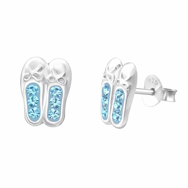 Hopeakorvakorut balettitossut Lasten hopeiset balettitossu-korvakorut sinisillä zirkoneilla. Kauniita balettitossuja koristavat vaaleansiniset korukivet. Korvakoruissa on luotettava tappikiinnitys.... Lue lisää