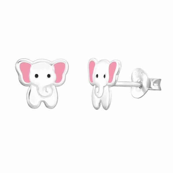 Lasten hopeiset norsu-korvakorut. Suloiset elefantti-korvakorut pinkeillä korvilla. Korvakoruissa on luotettava tappikiinnitys. Korvakorujen koko on 8,5 x 7,5 mm. Sirot ja kevyet nappikorvakorut, joita lapsi voi käyttää arjessa! Korvakorujen valmistusmateriaali on laadukas nikkelitön 925 sterling hopea.