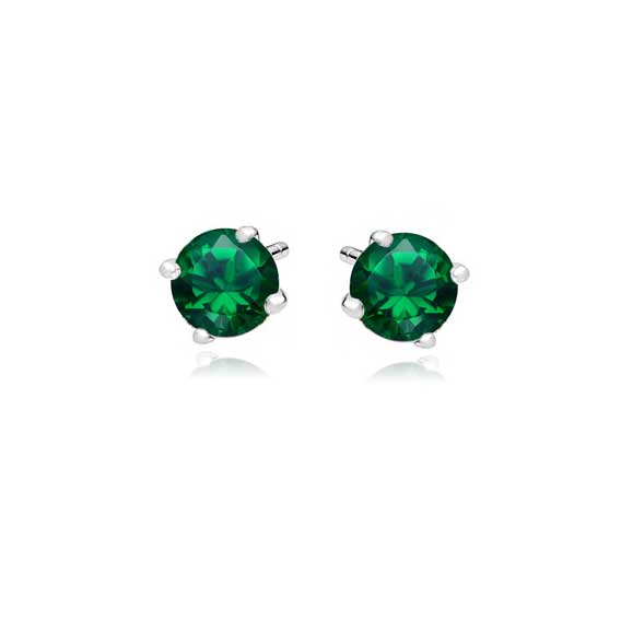 Hopeiset korvakorut pyöreällä vihreällä zirkonia-korukivellä. Nappikorvakorujen koko on 5 mm ja niissä on luotettava tappikiinnitys. Materiaali on nikkelitön 925 sterling hopea.