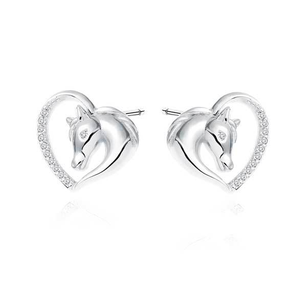 Hopeiset sydänkorvakorut hevosella. Näissä korvakoruissa yhdistyvät hevonen ja sydämen muoto. Hevoskorvakorujen koko on 11 x 12 mm. Hevosen silminä toimivat tyylikkäät kirkkaat zirkonia-korukivet. Korvakorujen valmistusmateriaali on laadukas nikkelitön 925 sterling hopea. Korvakoruissa on luotettava tappikiinnitys.
