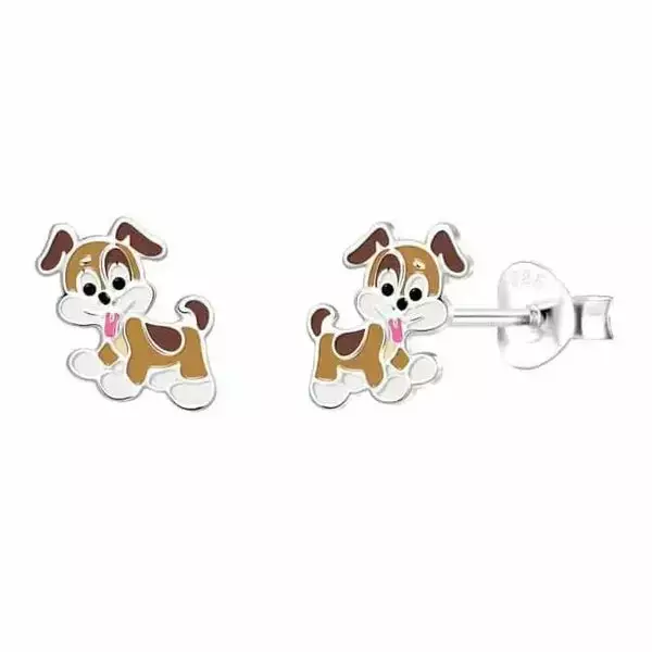 Lasten hopeiset koira-korvakorut. Korvakorun koko on 8 x 8 mm. Korvakoruissa on luotettava tappikiinnitys. Korvakorujen valmistusmateriaali on laadukas nikkelitön 925 sterling hopea.