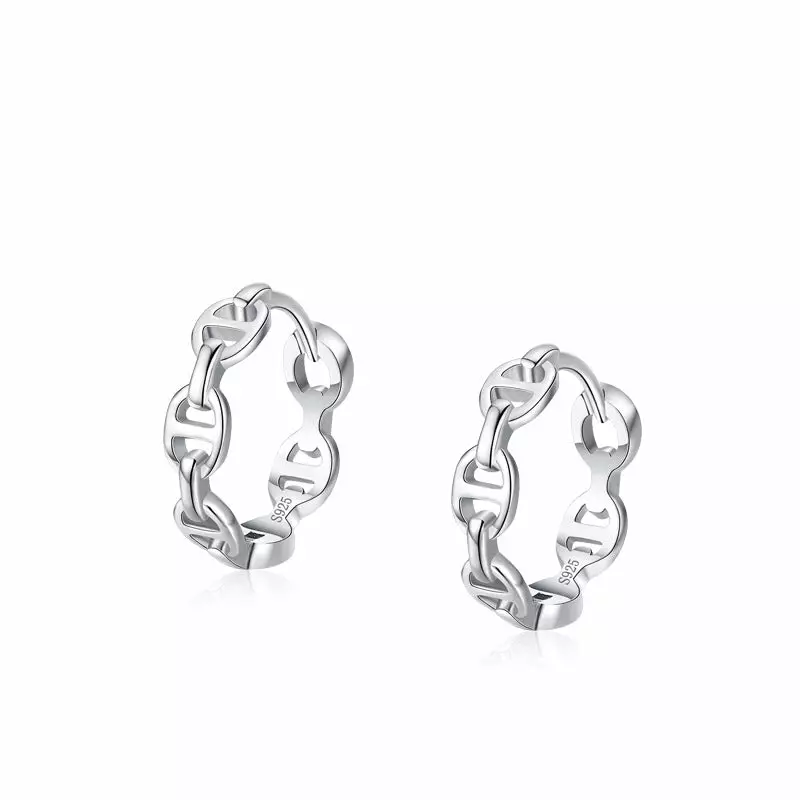 Yksityiskohtaiset hopeakorvarenkaat, joiden trendikäs muotoilu on saanut inspiraationsa klassisesta jykevästä ankkuriketjusta. Jäsennelty ja tyylikäs ketjumainen kuvio kiertää koko renkaan ympäri. Korvarenkaan ulkohalkaisija on noin 16 mm ja sen leveys on noin 3,5 mm. Korvarenkaissa on kätevä saranakiinnitys ja ne on valmistettu laadukkaasta nikkelittömästä 925 sterling-hopeasta.