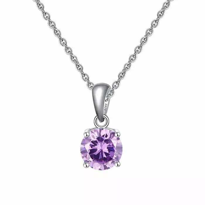 Hopeariipus lila pyöreä zirkonia 8 mm Ajaton hopeinen riipus herkän laventelinsävyisellä, pyöreällä zirkonia-korukivellä. Klassinen nelikyntinen istutus korostaa 8 mm kiven pehmeää ja... Lue lisää