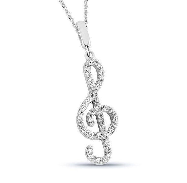 Ihana säkenöivä musiikkiaiheinen nuottiavain-hopeariipus kimaltavilla zirkonia-korukivillä! Ketjun pituus säädettävä 40-45 cm ja koruosan korkeus 20,5 mm.